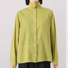 前面のピンタックのあしらいが、大人らしさを際立たせます。ボトムス IN/OUT、いずれもしやすい丈だと思います。通年使えるアイテムこそ上質に拘りたいところ。