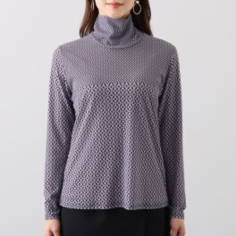 抑制の効いた多色の小柄模様は、無地であればボトムスカラーを選びません。